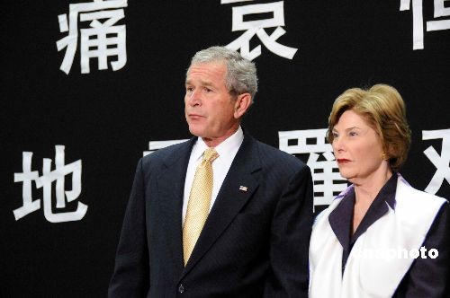 布什到中國駐美大使館悼念地震遇難者