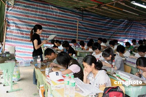 組圖:災(zāi)區(qū)學(xué)生在地震棚中復(fù)課