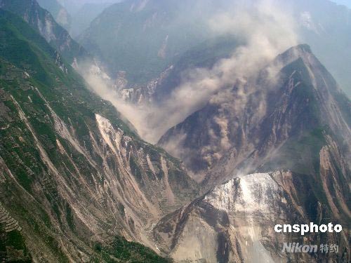 汶川震中區(qū)高山依然不斷發(fā)生山體滑坡泥石滾滾