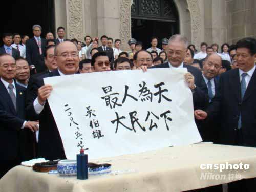 圖:吳伯雄在中山陵題詞“天下為公 人民最大”