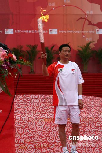 圖:南京首棒火炬手楊陽(yáng)現(xiàn)場(chǎng)展示火炬