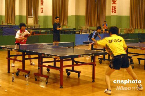 五月二十七日,四川省乒乓球運(yùn)動員在河南鄭州進(jìn)行緊張的訓(xùn)練。連日來,為避免地震的影響,四川省包括游泳、射擊、乒乓球、網(wǎng)球、跆拳道等六支運(yùn)動隊九十多名運(yùn)動員轉(zhuǎn)移到河南鄭州進(jìn)行訓(xùn)練,以全力備戰(zhàn)北京奧運(yùn)會和明年舉行的全運(yùn)會。 中新社發(fā) 史寶銀 攝