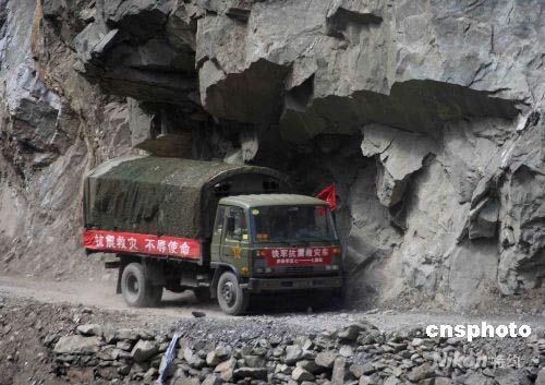 圖為車隊(duì)通過虎口崖。中新社發(fā) 曾憲平 攝