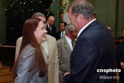 6月10日,中國(guó)駐俄大使劉古昌在使館為俄方赴華抗震救災(zāi)醫(yī)療隊(duì)舉行答謝招待會(huì)。圖為俄緊急救災(zāi)部部長(zhǎng)紹伊古的女兒尤利婭和同事在活動(dòng)現(xiàn)場(chǎng)。尤利婭是俄緊急情況部緊急心理救助中心主任、心理學(xué)副博士,四川發(fā)生大地震后,她被父親親自派往地震災(zāi)區(qū)進(jìn)行救援。中新社發(fā) 田冰 攝