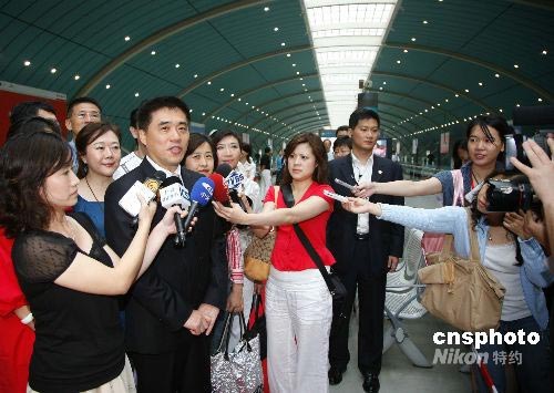 6月27日下午,臺北市長郝龍斌結(jié)束在上海的訪問,搭乘磁浮列車赴浦東國際機(jī)場返臺。郝龍斌向記者表示,此次上海之行很好,相信臺北與上海一定會雙贏。中新社發(fā) 潘索菲 攝