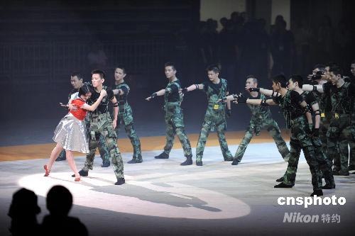 解放軍駐港部隊在慶香港回歸祖國11周年文藝匯演上演出抗震救災節(jié)目。中新社發(fā) 洪少葵 攝