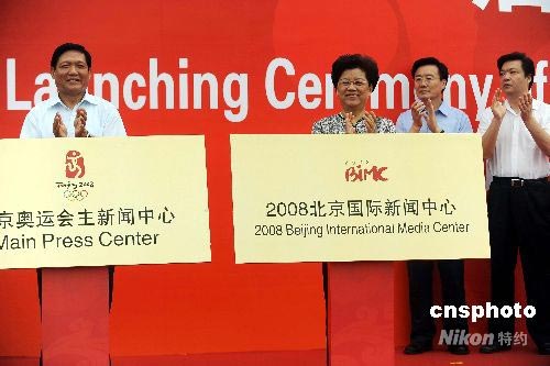 7月8日,北京奧運(yùn)會主新聞中心、國際廣播中心、國際新聞中心啟用。中共中央政治局委員、北京市委書記、北京奧組委主席劉淇,全國人大常委會副委員長、北京奧組委副主席陳至立等出席啟用儀式。中新社發(fā) 陳文 攝