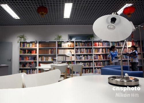 7月8日,北京2008年奧運會主新聞中心(MPC)正式開放,內(nèi)部的中小型圖書館可讓疲憊的記者放松一下。中新社發(fā) 杜洋 攝