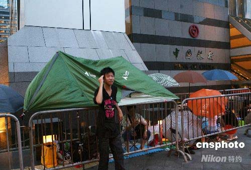 香港市民提前排隊等候奧運(yùn)紀(jì)念鈔票發(fā)行(2)