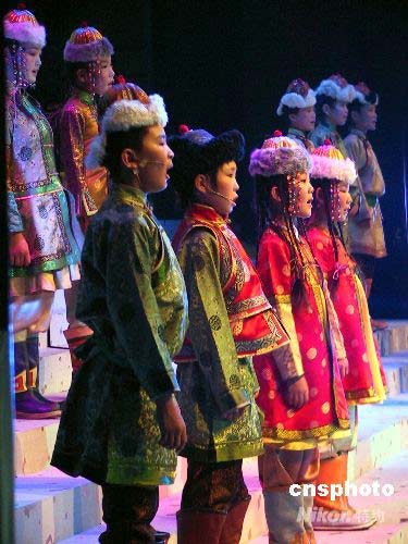 二十三日晚,來自呼倫貝爾的二十九個(gè)內(nèi)蒙古孩子登上臺北“國父紀(jì)念館”的大禮堂,為寶島臺灣的觀眾朋友帶來了大草原的天籟之音。中新社發(fā) 徐長安 攝