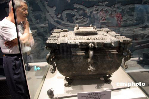 圖:中國(guó)科技館新館展出戰(zhàn)國(guó)早期銅鑒缶