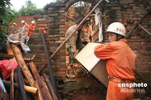 消防戰(zhàn)士幫助受災(zāi)村民轉(zhuǎn)移物資。中新社發(fā) 王川源 攝