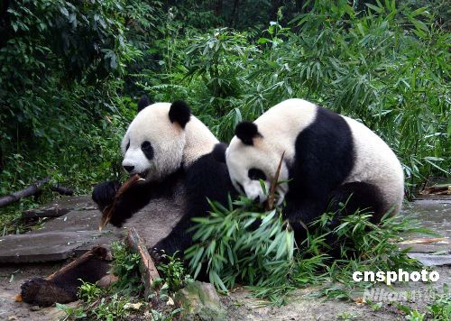 9月9日上午,海協會會長陳云林來到位于雅安的中國保護大熊貓研究中心碧峰峽基地,探望汶川大地震后轉移到這里的贈臺大熊貓“團團”和“圓圓”的生活情況,隨后,陳云林還參觀了熊貓幼兒園,探望了地震后出生的十三只小熊貓。中新社發(fā) 黃永莉 攝