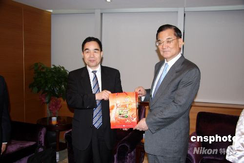 9月22日,中國國民黨榮譽(yù)主席連戰(zhàn),在臺北會(huì)見海峽兩岸出版交流20周年系列活動(dòng)組委會(huì)名譽(yù)主任、新聞出版總署署長柳斌杰。柳斌杰是率團(tuán)前來臺北參加紀(jì)念海峽兩岸出版交流20周年系列活動(dòng)的。中新社發(fā) 陳立宇 攝