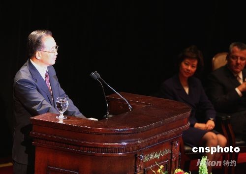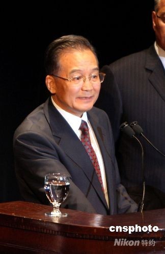 中國總理溫家寶23日在紐約出席美國友好團體午宴并發(fā)表演講。中新社發(fā) 李靜 攝