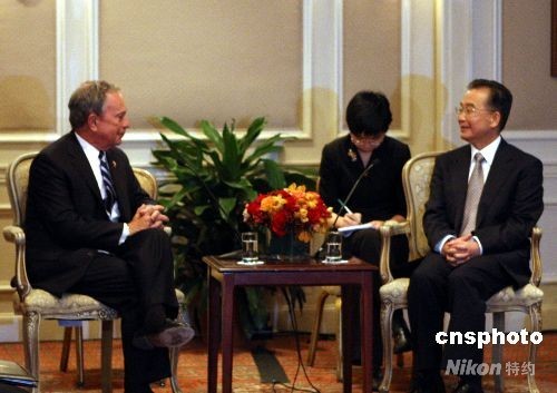 9月23日下午,中國(guó)總理溫家寶在紐約會(huì)見(jiàn)紐約市長(zhǎng)彭博。中新社發(fā) 李靜 攝