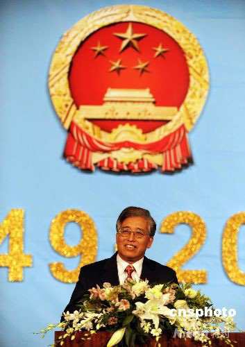 當(dāng)?shù)貢r間9月23日晚,中國駐洛杉磯總領(lǐng)事館在洛杉磯環(huán)球影城舉行中華人民共和國成立五十九周年國慶招待會,來自當(dāng)?shù)卣虒W(xué)界名流、華人華僑代表等數(shù)百人參加了招待會。中國駐洛杉磯總領(lǐng)事張?jiān)瓢l(fā)表演講,感謝各界人士為促進(jìn)中美關(guān)系的發(fā)展做出的貢獻(xiàn)。中新社發(fā) 張煒 攝
