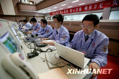 9月26日,科研人員在北京航天飛行控制中心對神舟七號進(jìn)行飛行控制。新華社記者 查春明 攝
