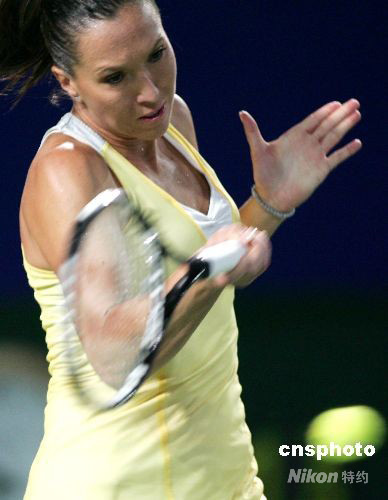 9月26日,在2008中國網(wǎng)球公開賽女子單打四分之一決賽中,塞爾維亞選手揚(yáng)科維奇以2比0戰(zhàn)勝斯洛伐克選手漢圖楚娃,晉級(jí)四強(qiáng)。中新社發(fā) 富田 攝
