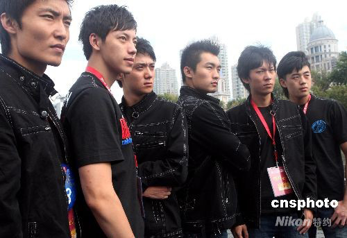 9月27日,正在天津參加“2008東麗湖世界最佳模特大賽中國區(qū)總決賽”的50名男女選手,乘游船游覽天津市區(qū)新貌,海河風(fēng)光。圖為參賽男模特在船上拍照。中新社發(fā) 錢興強(qiáng) 攝