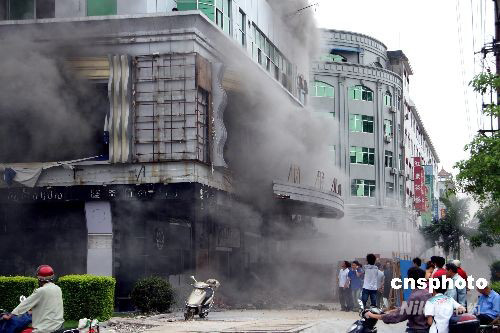 10月5日下午,廣西玉林市瑪田俱樂部在裝修過程中不慎起火,致使正在施工的21名工作人員被困火場(chǎng)。經(jīng)玉州消防大隊(duì)官兵20多分鐘奮力撲救,大火被撲滅,受困人員得以安全疏散。中新社發(fā) 吳海賢 攝