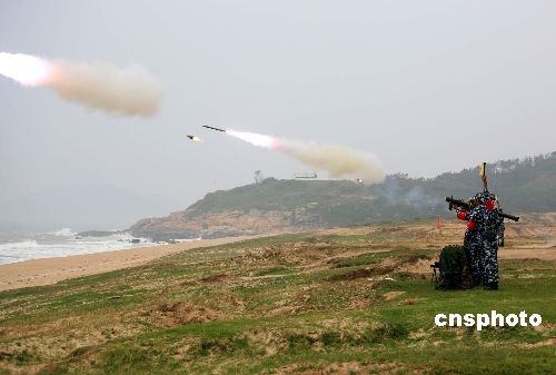10月12日下午,海軍陸戰(zhàn)隊某旅在南海某海島組織某型防空導(dǎo)彈實彈射擊考核。是時,考核地域陰雨蒙蒙,風大浪高,能見度低,很難清楚辨認航模靶機的具體目標方位。該旅導(dǎo)彈營官兵憑借平時所練就的扎實基本功,在惡劣的天候條件下,沉著冷靜,果斷尋找最佳戰(zhàn)機,捕捉目標,先后兩次兩發(fā)齊射,將航模目標打了個凌空開花,取得了4發(fā)直接命中的優(yōu)異成績,開創(chuàng)了海軍部隊首次實射該型導(dǎo)彈并全部命中的先例。中新社發(fā) 李唐 攝