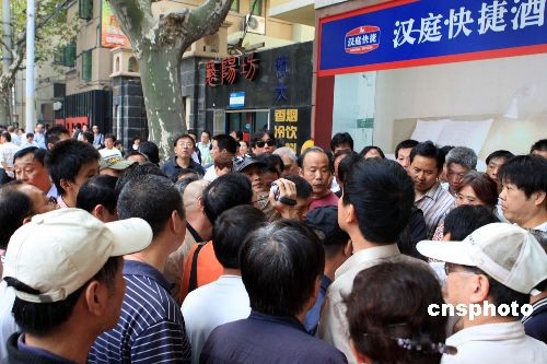 10月20日,眾多上海市民聚集在上!案咴骸边呴T襄陽路上,等待“楊佳襲警案”的審判。當(dāng)日上午,“楊佳襲警案”在上海市高級(jí)人民法院第五法庭繼續(xù)二審,法庭宣布駁回上訴,維持原判。中新社發(fā) 潘索菲 攝