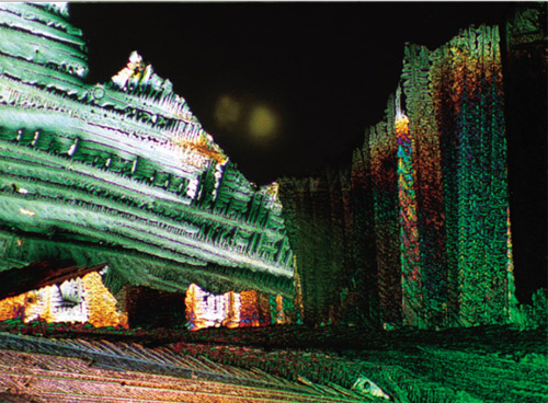 抗癌藥絲裂霉素,瑪格麗特·奧切斯莉攝,放大10倍。拍攝地點:美國肯塔基州路易斯維爾市。所用技術:偏振光。