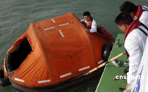 圖為救助船進(jìn)行救人演練。中新社發(fā) 王東明 攝