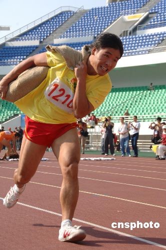 十月二十八日上午,云南隊(duì)蘇龍?jiān)谵r(nóng)運(yùn)會(huì)“男子六十米搶收糧食進(jìn)倉(cāng)比賽”預(yù)賽時(shí),搶糧有術(shù)領(lǐng)先于對(duì)手。