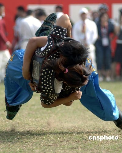 10月31日,第六屆全國農(nóng)運(yùn)會“搏克”表演賽在福建泉州僑鄉(xiāng)體育場舉行。搏克是蒙古語,意為摔跤,同時含有結(jié)實(shí)、團(tuán)結(jié)、持久之意。搏克是目前世界上流行的各種摔跤運(yùn)動中完整保持自己古老民族特色的一項(xiàng)直接對抗性競技體育運(yùn)動。