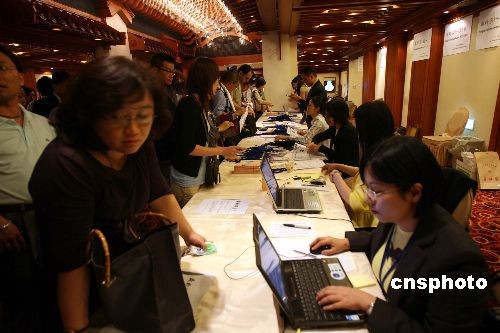 十一月二日,大批媒體記者在臺北圓山飯店新聞中心領取采訪證件。據悉,兩岸三地及海外的一百三十八家媒體共一千零四十七名記者報名,獲準采訪的記者有五百七十四名。中新社發(fā) 洪少葵 攝