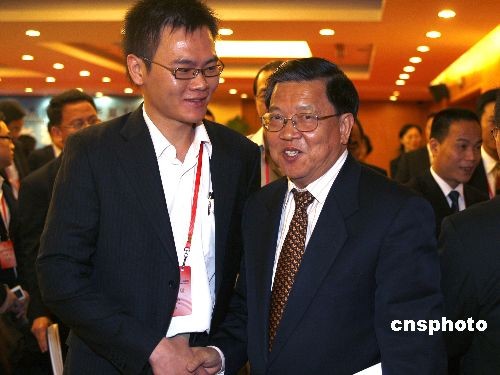 11月4日,“2008年海外華裔青年杰出人士華夏行”活動(dòng)在北京開幕,來自27個(gè)國(guó)家和地區(qū)的近130位代表與會(huì)。博鰲亞洲論壇秘書長(zhǎng)龍永圖在在開幕式上做精彩演講,就中國(guó)經(jīng)濟(jì)發(fā)展等問題和華裔代表互動(dòng)。中新社發(fā) 杜洋 攝