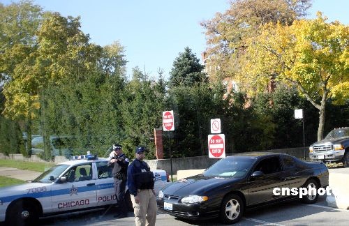 11月4日美國(guó)大選全民投票日,民主黨總統(tǒng)候選人奧巴馬位于伊利諾伊州芝加哥南部的住宅周圍安保措施十分嚴(yán)格。住宅周圍不僅有禁止通過(guò)和停車的標(biāo)志,還有警員把守。中新社發(fā) 李靜 攝