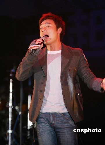 許志安在慈善音樂(lè)會(huì)上傾情演唱。中新社發(fā) 武仲林 攝