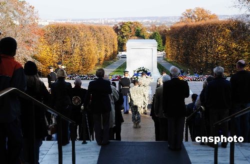 每年11月11日是美國(guó)的老兵節(jié),美國(guó)政府都會(huì)在位于華盛頓特區(qū)一河之隔的弗吉尼亞阿靈頓國(guó)家公墓進(jìn)行紀(jì)念活動(dòng),這里埋葬著5萬(wàn)多名為國(guó)捐軀的美國(guó)將士。當(dāng)日,美國(guó)副總統(tǒng)切尼出席了在這里舉行的紀(jì)念儀式。中新社發(fā) 邱江波 攝
