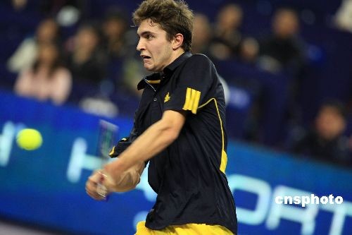 11月12日,在上海旗忠網(wǎng)球中心進行的上海大師杯單打紅組比賽中,西蒙以0比2不敵穆雷。中新社發(fā) 湯彥俊 攝