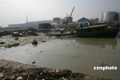 11月13日上午7點55分,停靠在浙江省杭州市余杭區(qū)塘棲鎮(zhèn)榮圣化工碼頭的一艘裝有120噸二氧化碳的船只發(fā)生爆炸。事故造成兩人死亡三人受傷,另外一艘裝有濃硫酸的船只發(fā)生泄漏。中新社發(fā) 林云龍 攝