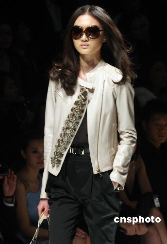 11月13日晚,意大利某著名時(shí)裝品牌在北京舉行中國的首場時(shí)裝發(fā)布會。圖為模特展示新款時(shí)裝。中新社發(fā) 錢興強(qiáng) 攝