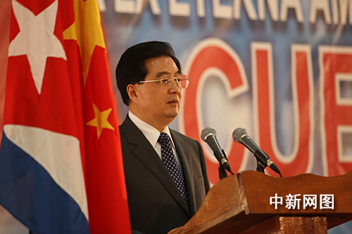 中國國家主席胡錦濤,十八日在古巴國務(wù)委員會主席勞爾·卡斯特羅的陪同下,來到古巴哈瓦那大學(xué)塔拉拉分校,看望中國留學(xué)生。