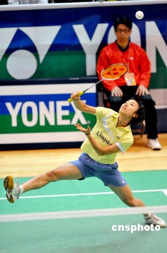 中國香港選手葉姵延在香港伊利沙伯體育館舉行的二零零八香港公開羽毛球超級賽首輪比賽中,以二比零戰(zhàn)勝荷蘭選手姚潔,晉級十六強。中新社發(fā) 鄧慶樂 攝