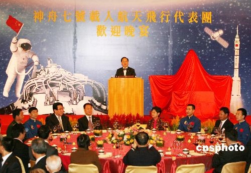 十二月五日晚,香港特區(qū)政府在香港會議展覽中心舉行晚宴,歡迎“神舟七號”載人航天飛行代表團(tuán)一行。中新社發(fā) 武仲林 攝
