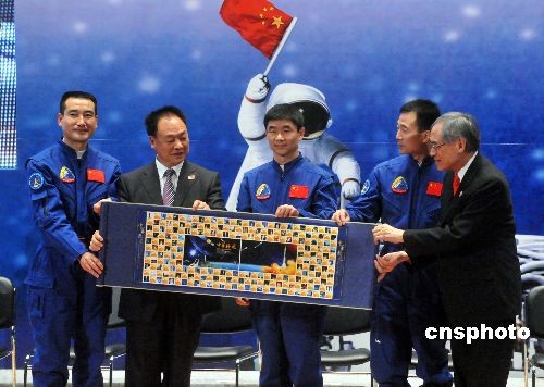 圖為航天飛行代表團(tuán)向中文大學(xué)致送紀(jì)念品。中新社發(fā) 鄧慶樂 攝