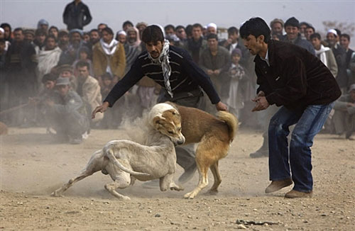 近日,阿富汗舉行了斗狗比賽,數(shù)千名當(dāng)?shù)厝司奂诳Σ紶柦纪庥^看該項比賽。