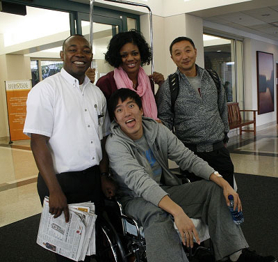 休斯敦當(dāng)?shù)貢r(shí)間6日11點(diǎn),教練孫海平和田管中心副主任馮樹勇率先走出了赫曼紀(jì)念醫(yī)院,而孫海平的手上還提著一副拐杖,那本來是劉翔手術(shù)后用來輔助行走的。