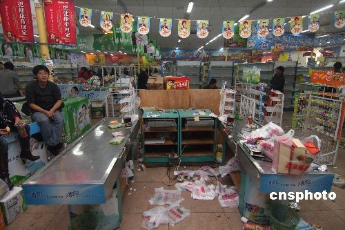 12月10日,湖南省婁底市民營(yíng)市場(chǎng)嘉家樂超市遭數(shù)百群眾哄搶后吸引許多人圍觀。