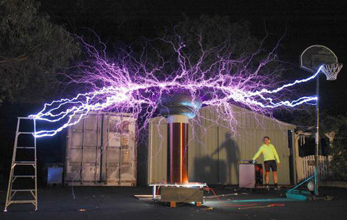 特倫在做實驗時,習慣用一根釣魚竿調節(jié)閃電束的輻射方向。為了營造出五光十色的奇特效果,他通過安裝在照相機上方的一個濾色轉盤,讓“人造閃電”呈現出不同的顏色。由于特倫利用的是“超長曝光”攝影技術,因此能夠在同一張照片中記錄下長達十幾秒的閃電效果。特倫表示:“在照片上,你看得見電火花,卻看不到它們究竟是從哪里冒出來的。這是一種虛幻的效果,可是并非借助Photoshop處理而來——所有一切都是用相機記錄下來的(真實影像)!