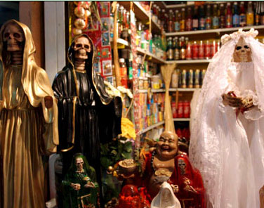 3.墨西哥索諾拉州的魔法市場(chǎng):索諾拉州有一個(gè)魔法市場(chǎng),這里聚集了一大批巫婆。巫婆們坐在自己的小店里,聲稱(chēng)只要10美元就可以消除來(lái)者的貧窮和痛苦。這個(gè)市場(chǎng)很紅火,客人有墨西哥當(dāng)?shù)厝,也有慕名而?lái)的外地游客。來(lái)這里的人走時(shí)都要帶些令人生畏的東西,如神秘條幅、蛇血、干鳥(niǎo),因?yàn)樗麄兿嘈胚@些東西可以帶來(lái)好運(yùn)。