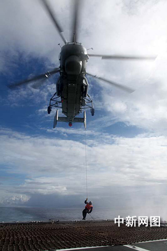 中新網(wǎng)“?凇迸12月28日電(記者 孫自法) 12月28日,中國海軍遠(yuǎn)洋護(hù)航艦艇編隊(duì)“?凇碧(hào)導(dǎo)彈驅(qū)逐艦首次組織隨艦特戰(zhàn)隊(duì)員與艦載直升機(jī)進(jìn)行海上艦機(jī)協(xié)同滑降訓(xùn)練。