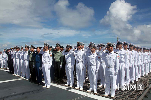 中新網(wǎng)“?凇迸12月28日電(記者 孫自法)12月28日上午,南中國(guó)海當(dāng)天艷陽高照、海風(fēng)吹拂,中國(guó)海軍護(hù)航艦艇編隊(duì)護(hù)航官兵列隊(duì)甲板,隆重舉行“走向大洋”宣誓儀式。